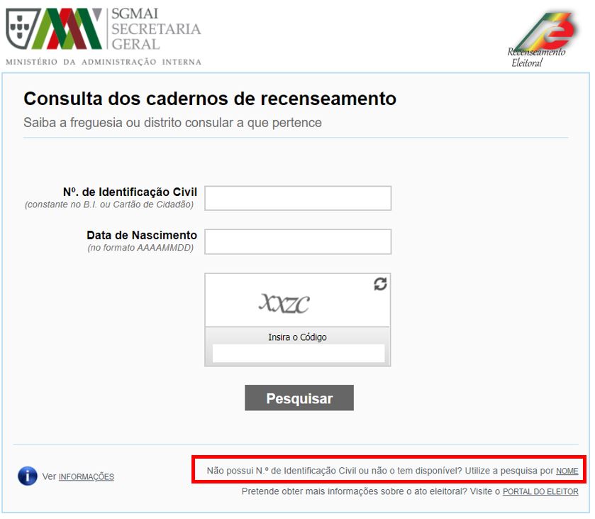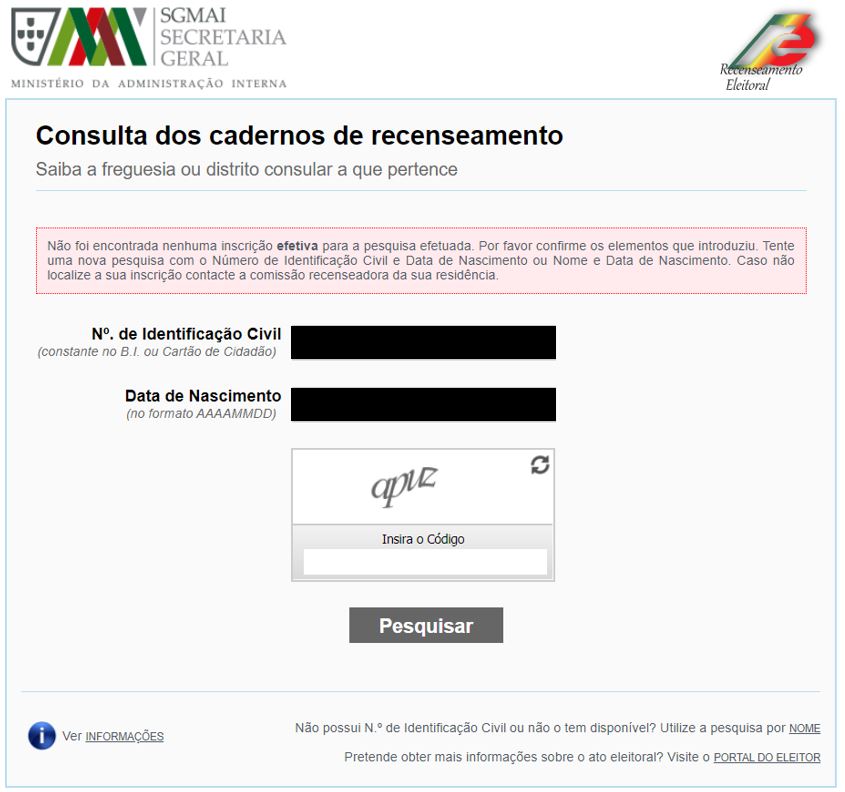 - Se ao pesquisares não encontrares um resultado é porque não estás recenseado.