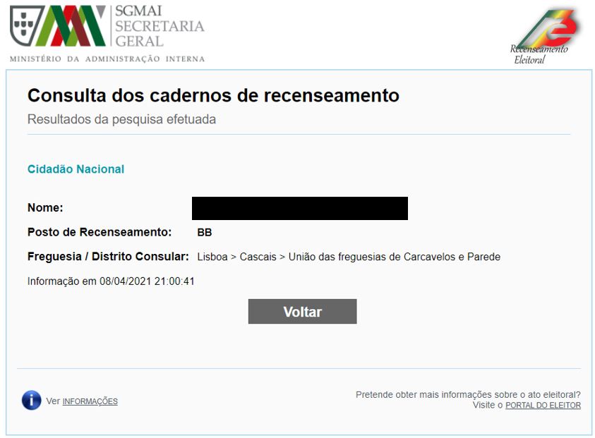 - Se ao pesquisares encontrares um resultado, então estás recenseado.